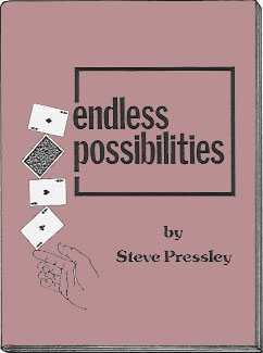A softbound illustrated collection of seventeen closeup card routines designed for the progressive card enthusiast. What Others Are Saying About Endless Possibilities "This is sizzling material for anyone hungry to fry magicians or saute spectators. These are card tricks that cook!" ...Steve Beam - The Trapdoor "One of the most refreshing card books to emerge in recent years. I recommend this book unreservedly." ...Peter Duffie - Profile Magazine Steve's routines are innovative and cleverly subtle! ...Harvey Rosenthal |
